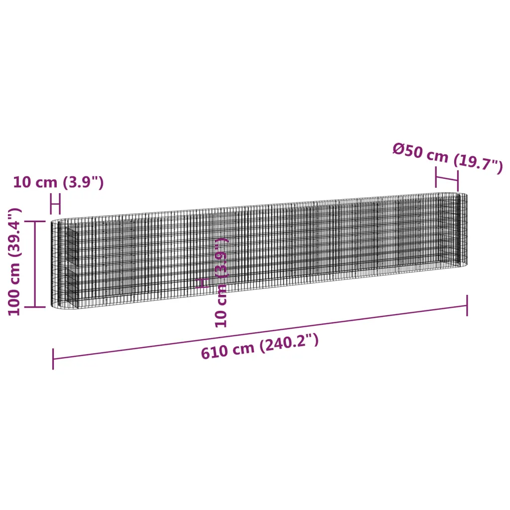 See pikk gabioonist taimelava võimaldab rajada aeda või terrassile tugeva lille- või piirderea. Tsingitud rauast raam on rooste- ja ilmastikukindel, sobides kasutamiseks eri aastaaegadel. Täidetuna kivide või kruusaga moodustab see vastupidava ja dekoratiivse piirde istutusalade ümber.