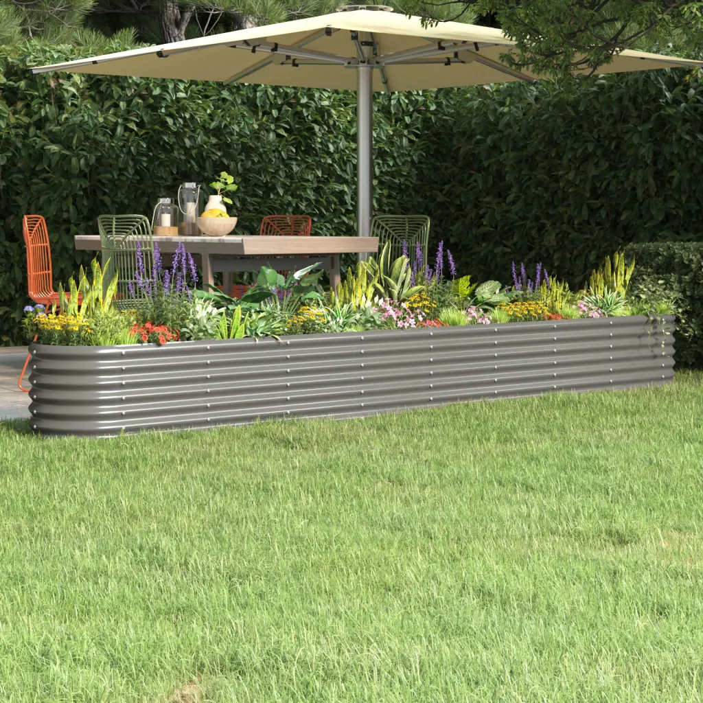 - Pulbervärvitud rooste- ja korrosioonikindel pind talub niiskust ja muutlikke ilmastikuolusid, muutes taimekasti sobivaks aastaringseks välikasutuseks.