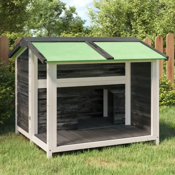 See hall männipuidust koerakuut mõõtmetega 96 x 87 x 80,5 cm loob sinu lemmikloomale turvalise ja kuiva puhkepaiga õuealal. Vastupidavast männipuidust ja vineerist konstruktsioon ning veekindel roheline katus kaitsevad looma vihma ja niiskuse eest, suur sissepääs tagab hea ligipääsu ja õhuringluse.