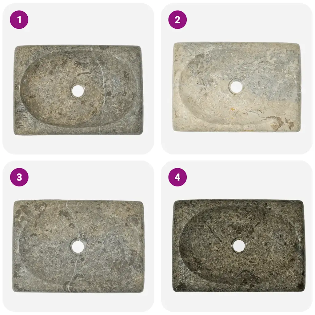 Pange tähele, et marmor on naturaalne materjal ning sellel võib esineda toonierinevusi. Eriti halli marmori puhul võib tegeliku toote värvus olla veidi heledam või tumedam kui näidispiltidel ning mõnikord võib pinnal esineda mitmevärvilisi mustreid. Need eripärad ei ole vead, vaid rõhutavad iga valamu kordumatut iseloomu.