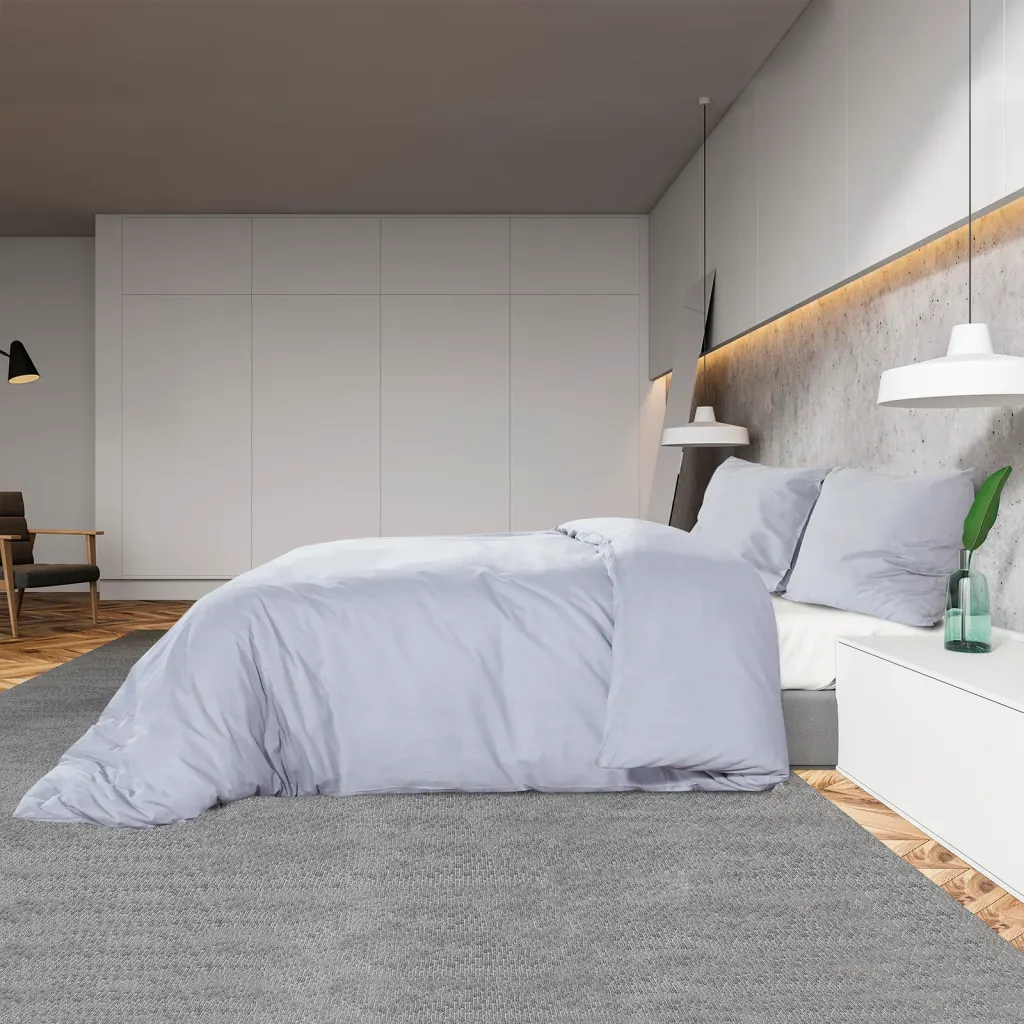 Hall puuvillane voodipesukomplekt mugavaks ja korrastatud magamistoaks