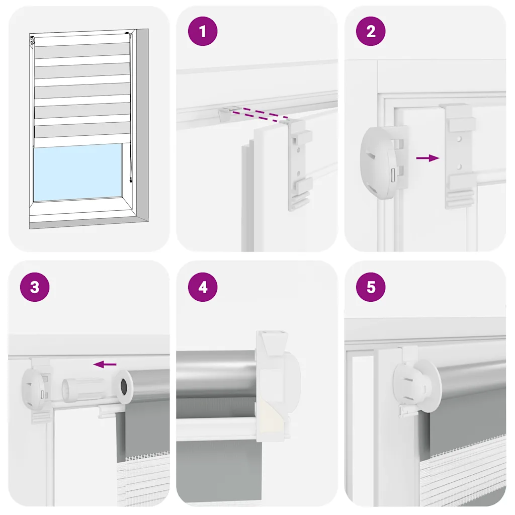 Ruloo on mõeldud lihtsaks paigaldamiseks. Ülemine alumiiniumsiin kinnitatakse kaasasolevate konksude ja kronsteinide abil ning raskem alumine siin aitab kangal sirgelt langeda. Tõmbekett võimaldab ruloo asendit täpselt reguleerida, joondades läbipaistvad ja läbipaistmatud ribad vastavalt soovitud valguse hulgale. Ülemise siini kogulaius koos kinnitustarvikutega on 3 cm laiem kui kangas, mis tuleb akna mõõtmisel arvesse võtta.