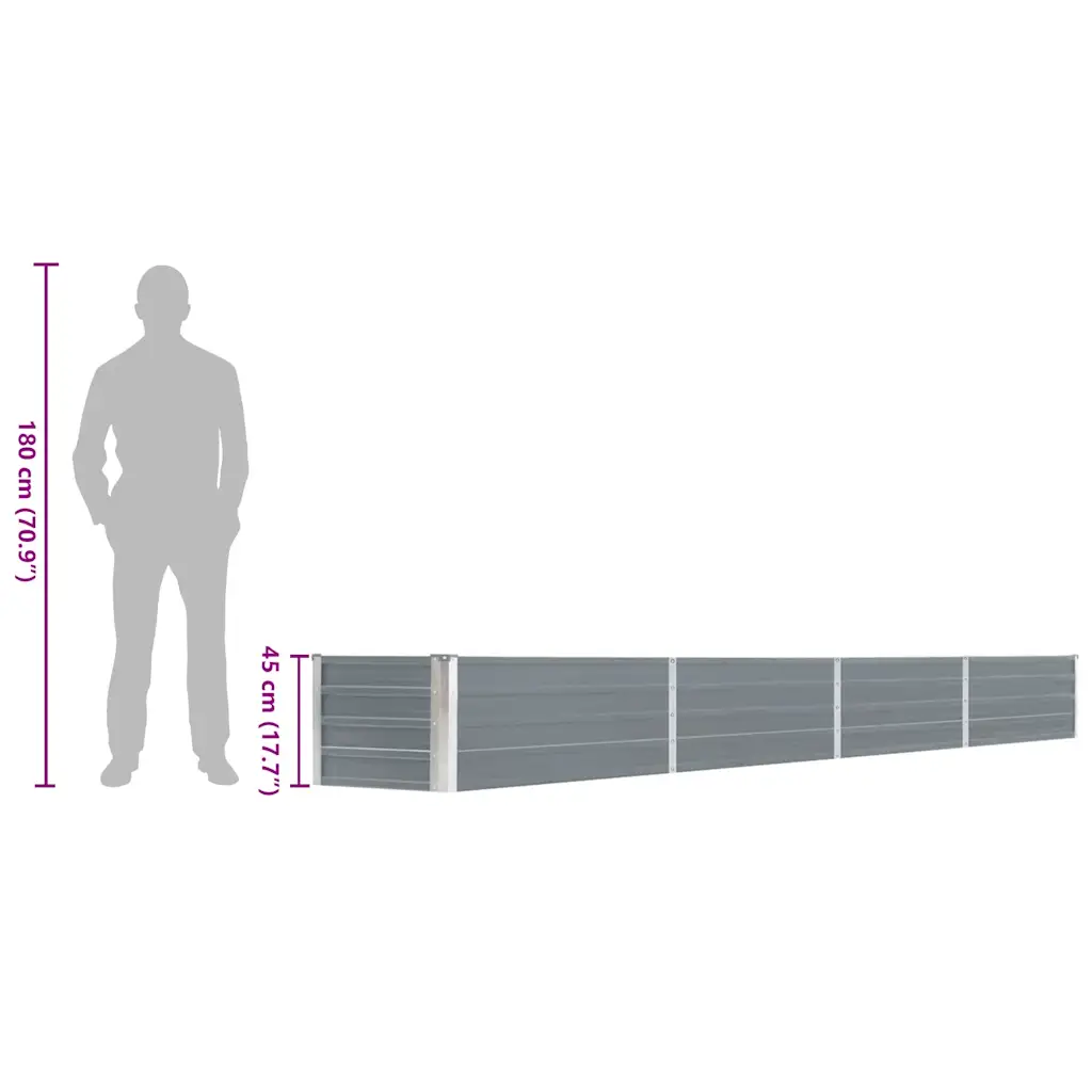 Hallist tsingitud terasest taimelava pakub mugavat ja korrastatud istutuskohta aias, rõdul või verandale. Avatud alaosa võimaldab hea drenaaži ning pikk, madal konstruktsioon sobib nii köögiviljade, maitsetaimede kui ka lillede kasvatamiseks.