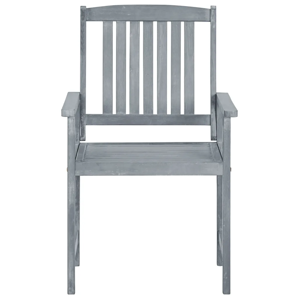 See komplekt sisaldab nelja halliks viimistletud akaatsiapuidust aiatooli, mis sobivad terrassile, aeda või rõdule. Tugev puitraam koos liistudest seljatoega tagab stabiilse istumise, samas kui pehmed antratsiitvärvi istmepadjad lisavad igapäevaseks kasutamiseks vajalikku mugavust. Padjad kinnitatakse nööridega tooli külge, et need püsiksid kindlalt paigal.
