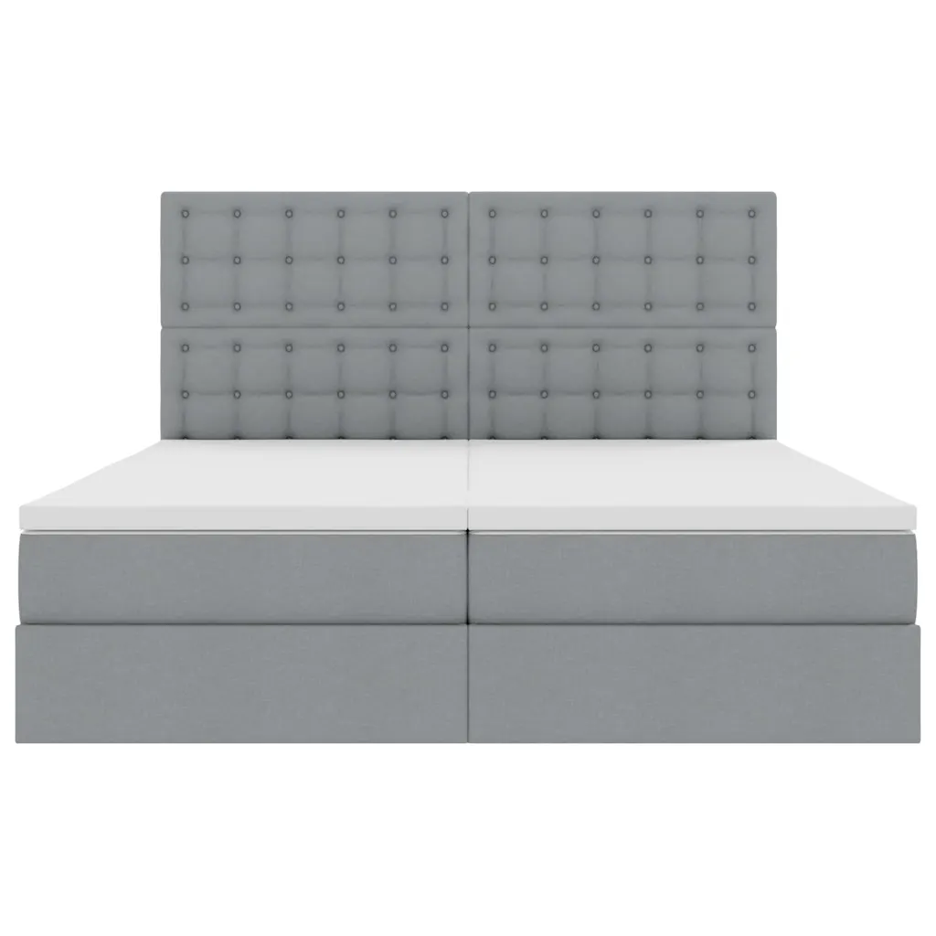 See helehall 180 x 200 cm kaheinimesevoodi ühendab kaasaegse disaini ja praktilise panipaiga. Kangast polsterdatud raam ja kõrge peats loovad hubase ilme, samal ajal kui USB-toitel LED-ribavalgustus peatsis annab magamistoale õdusa meeleolu. Komplektis olevad keskmise jäikusega vahtmadratsid tagavad tasakaalustatud toe erinevatele magamisasenditele.