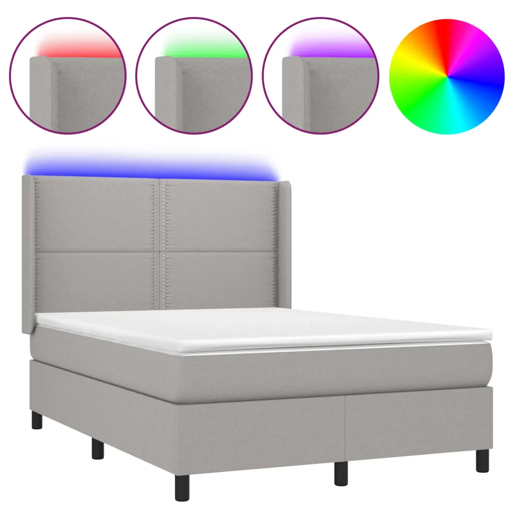 Helehall kontinentaalvoodi LED valgustuse ja madratsiga mugavaks uneks 140 x 200 cm