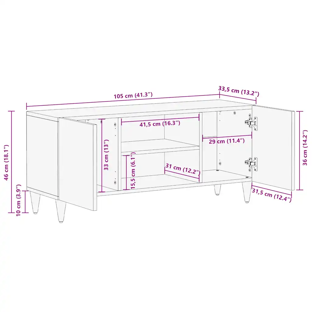 See helehall mangopuidust telerikapp aitab hoida elutoa või magamistoa meediaseadmed, juhtmed ja tarvikud korrapäraselt paigas. Kompaktne korpus mõõtudega 105 x 33,5 x 46 cm sobib hästi nii väiksematesse kui ka avaramatesse ruumidesse, pakkudes samas ruumikat panipaika ja tugevat pinda teleri ning dekoratsioonide jaoks. Nikerdatud esiosad ja helehall viimistlus annavad kapile tagasihoidlikult dekoratiivse ilme, mis sobitub erinevate sisustusstiilidega.