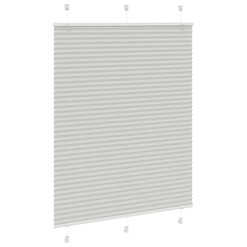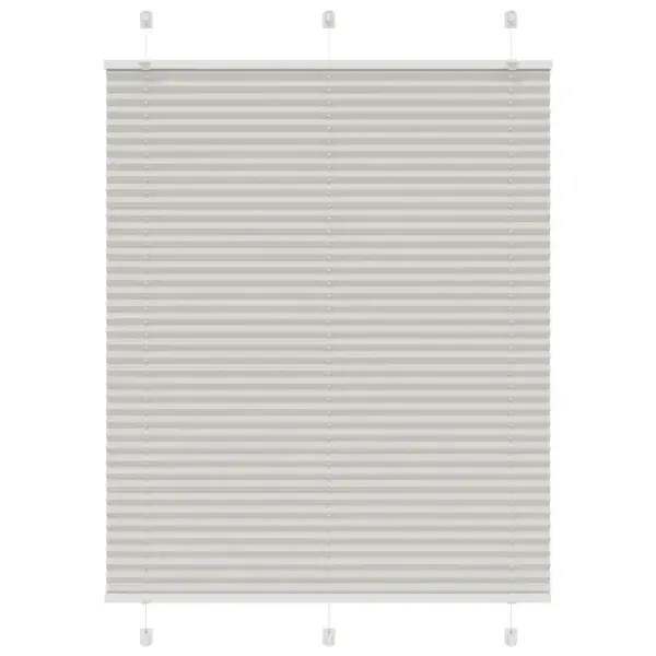 - Plisseeritud ruloo helehalli kangaga mõõduga 105 x 100 cm