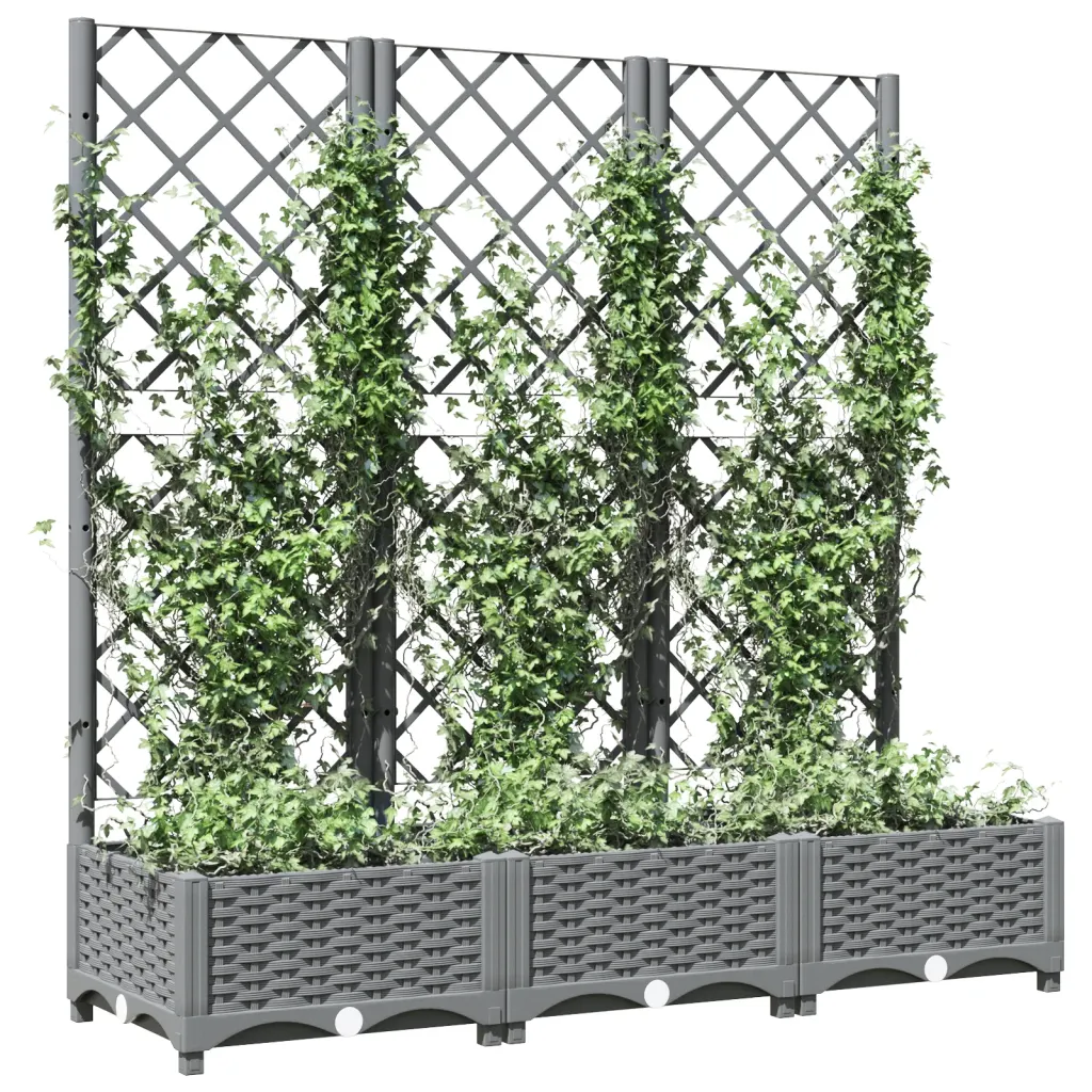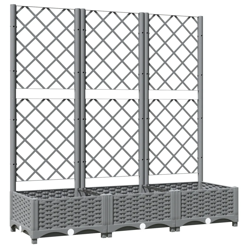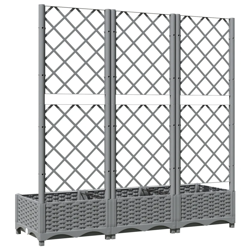 Kui soovite luua kompaktsel pinnal rohkem rohelust ja saada tuge ronitaimede kasvatamiseks, on see helehall polüpropüleenist kast koos võrega praktiline lahendus. Tänu mõõtmetele 120 x 40 x 121,5 cm pakub see piisavalt ruumi taimedele ning sobib hästi nii väiksematesse kui ka suurematesse väliruumidesse.