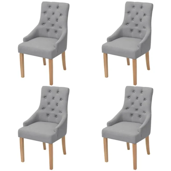 - 4 x helehall käetugedega söögitool riidest polsterduse ja tammepuidust jalgadega.