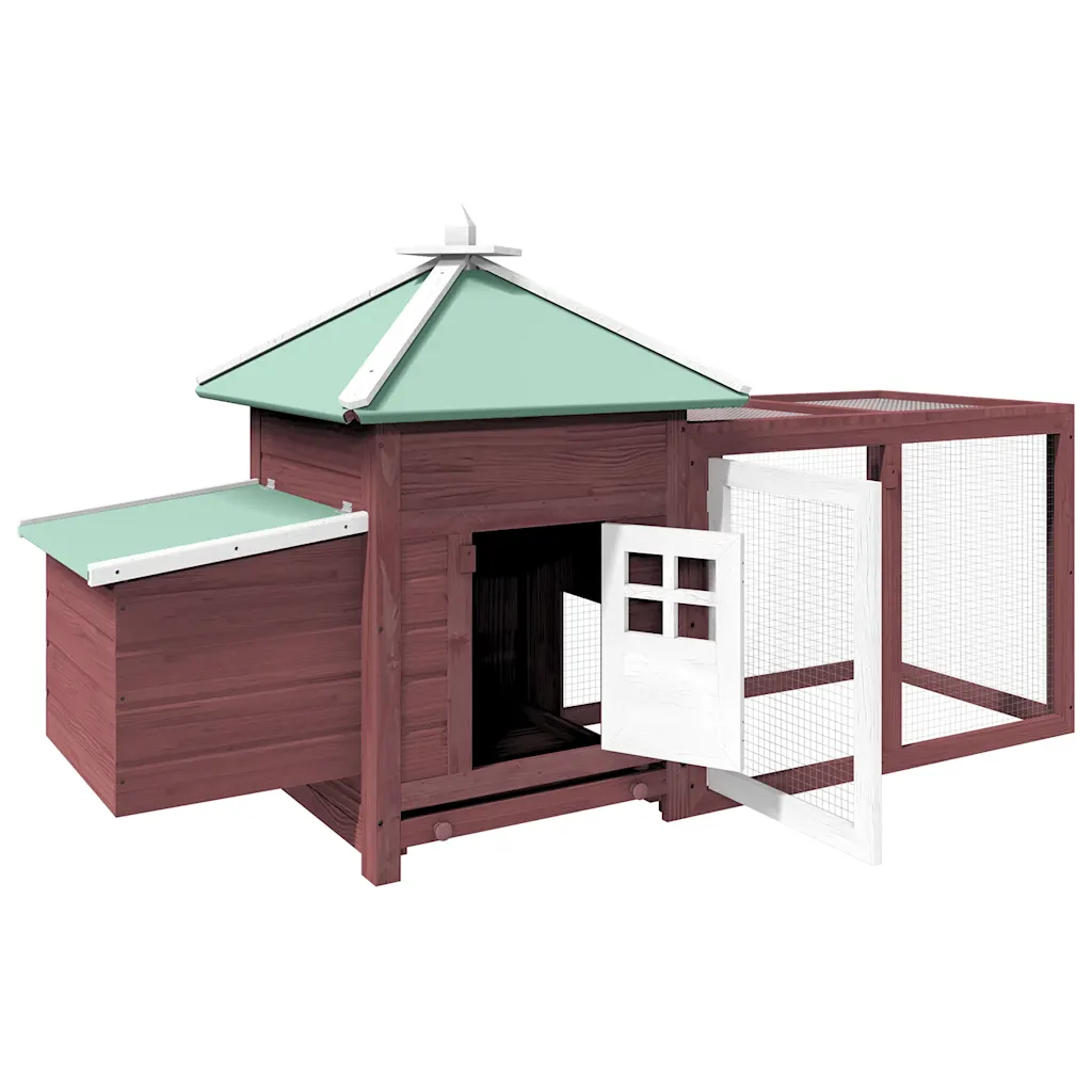 See helepruun kuusepuidust kanakuut pesakastiga pakub kaitstud ja mugava elamisala väikestele lindudele või loomadele, eriti kanadele. Konstruktsioon koosneb eraldiseisvast majast, pesakastist ja avarast jooksuaedikust tsingitud terasvõrguga, mis võimaldab lindudel värsket õhku nautida ning samal ajal neil silma peal hoida. Kaldus vettpidava katusega kuut aitab hoida sisemuse kuivana ja pakub sobiva varjualuse puhkeajaks.