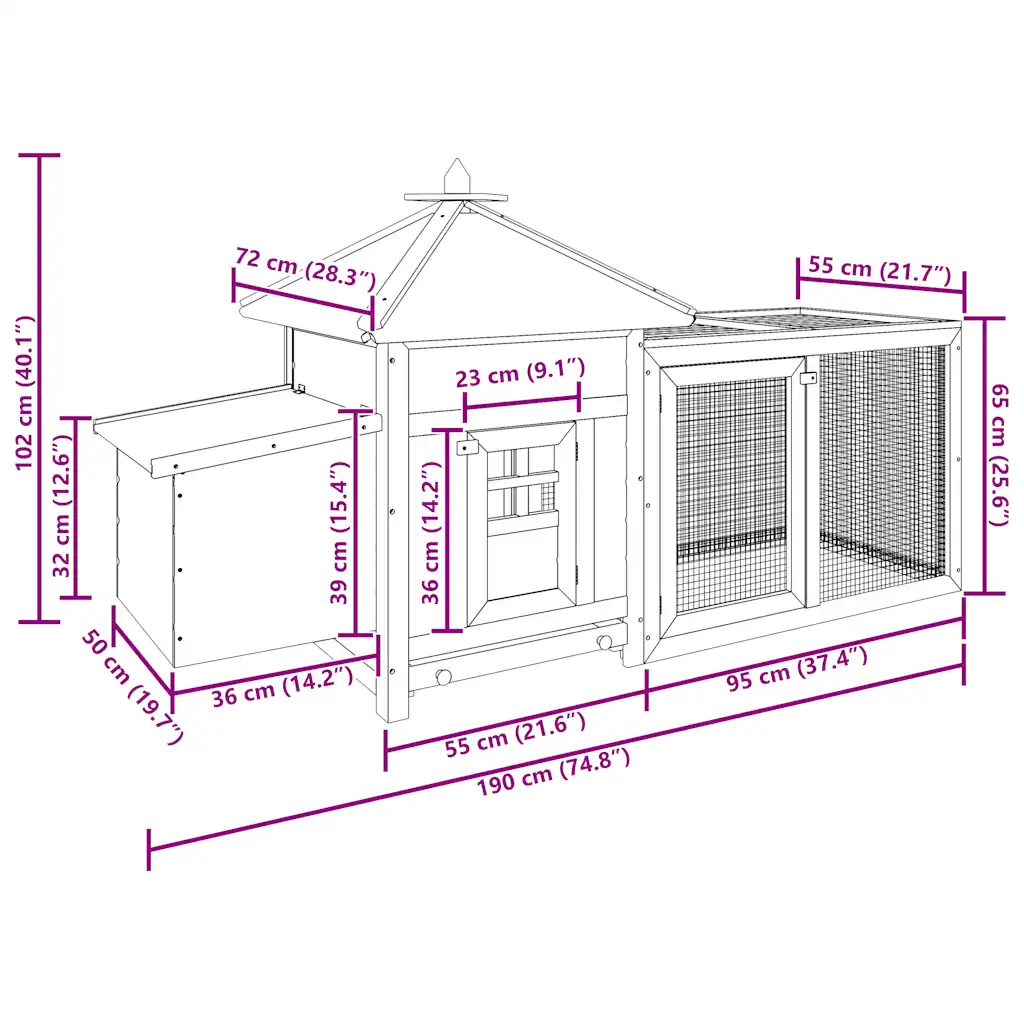 - Kvaliteetsed materjalid – konstruktsioon on valmistatud kuusepuidust ja vineerist ning ümbritsetud tsingitud terasvõrguga, mis lisab vastupidavust ja kaitseb loomi.