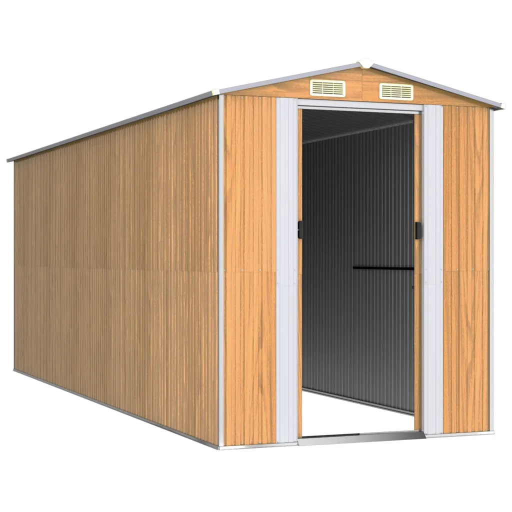 See helepruun aiakuur on praktiline lahendus õuehoiuks, pakkudes ruumi välitööriistadele, basseinitarvikutele, aiamööblile ja erinevatele seadmetele. Tsingitud terasest konstruktsioon on loodud taluma ebasoodsaid ilmastikuolusid ning kahekordsed lükanduksed ja ventilatsiooniavad tagavad mugava kasutuse ja hea õhuvahetuse.