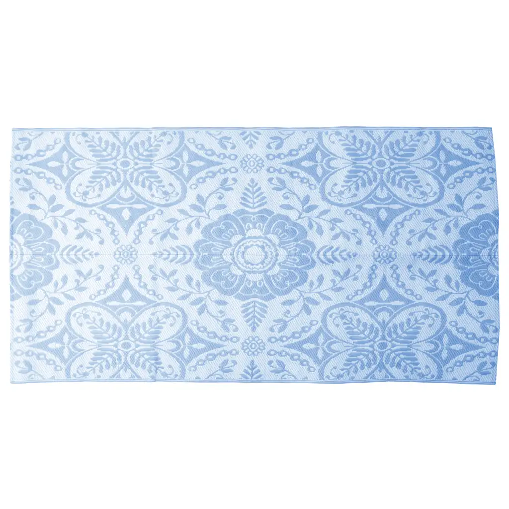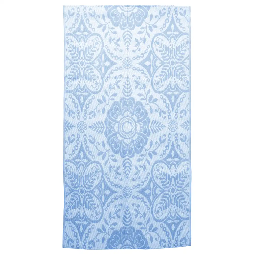 Trendikas ARAKIL õuevaip mõõdus 120 x 180 cm lisab terrassile, verandale, rõdule või basseinialale hubasust ja visuaalset aktsenti. Helesinine jacquard-muster seob õues istumis- ja puhkeala ühtseks tervikuks ning muudab väliruumi kutsuvamaks.