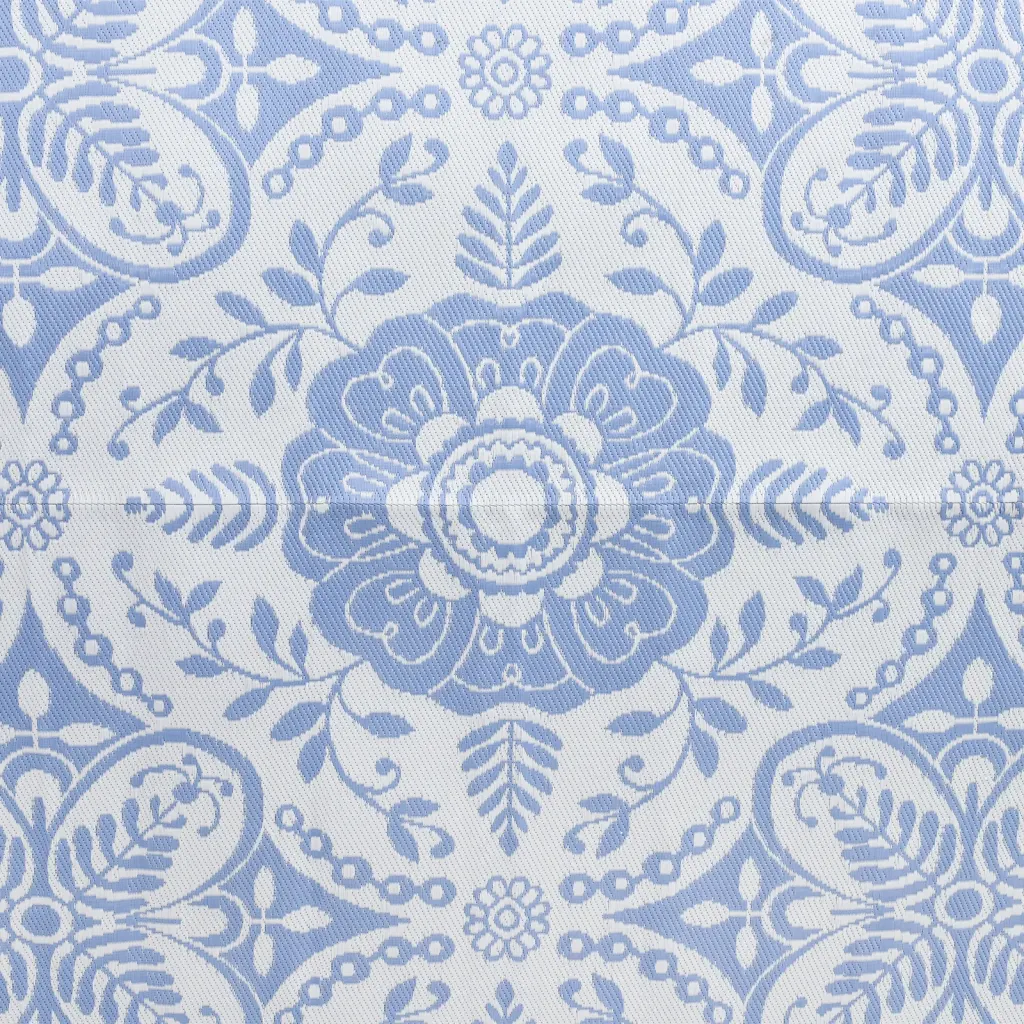 Helesinine õuevaip ARAKIL on lihtne viis muuta terrass, veranda või basseiniala visuaalselt ühtseks ja koduseks. Polüpropüleenist jacquard-mustriga vaip on pehme ja meeldiva struktuuriga, tuues õuealale rohkem mugavust. Tänu suuremale mõõdule 190 x 290 cm sobib see hästi istumis- ja puhkenurkade alla.