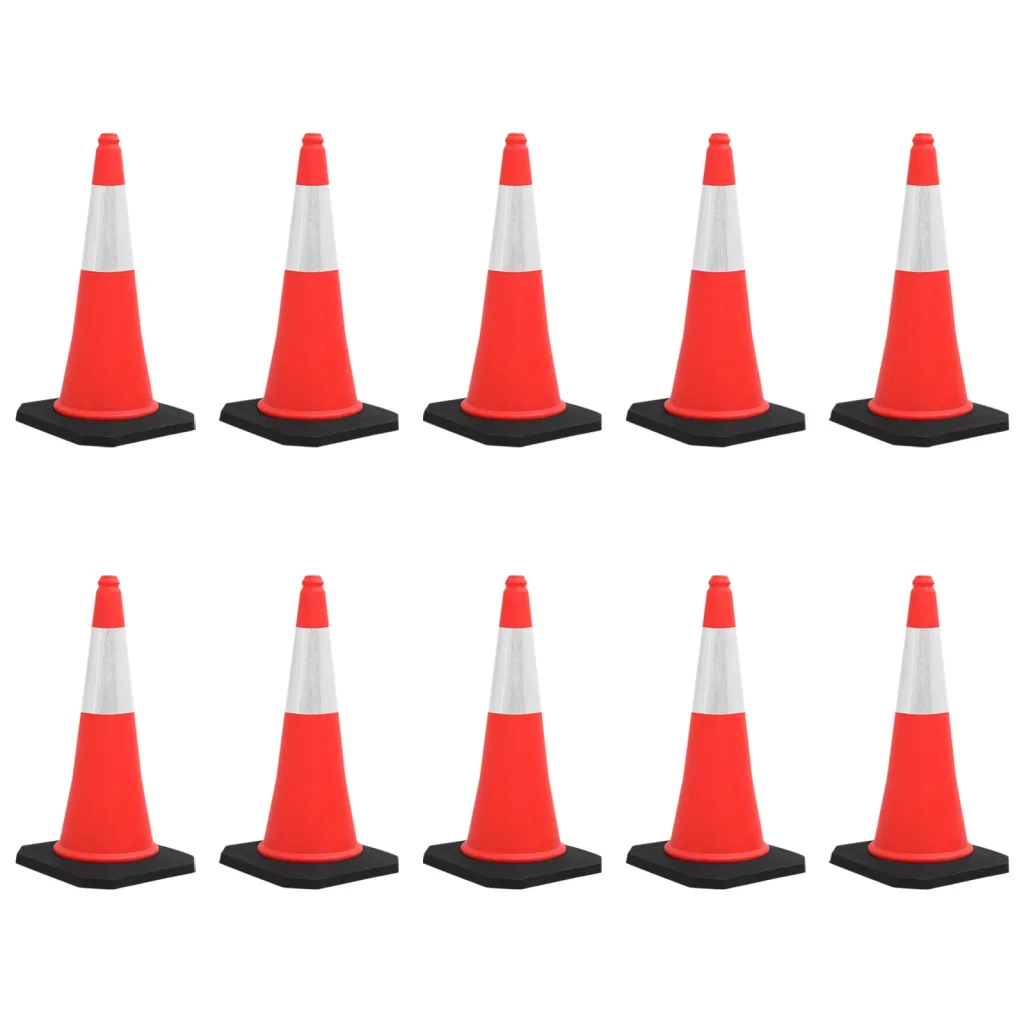 - 10 x liikluskoonus punase koonuse, valge helkurriba ja musta raske alusega