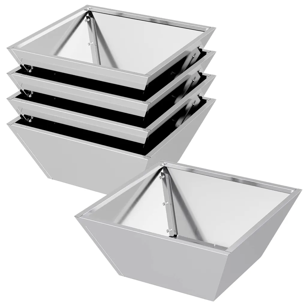 Komplektis on 5 hõbedast tsingitud terasest aia istutuspotti, igaühe mõõdud on 40 x 40 x 15 cm.