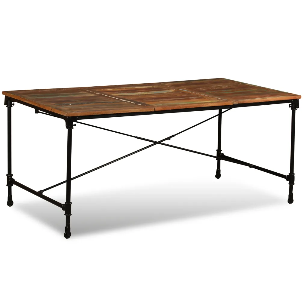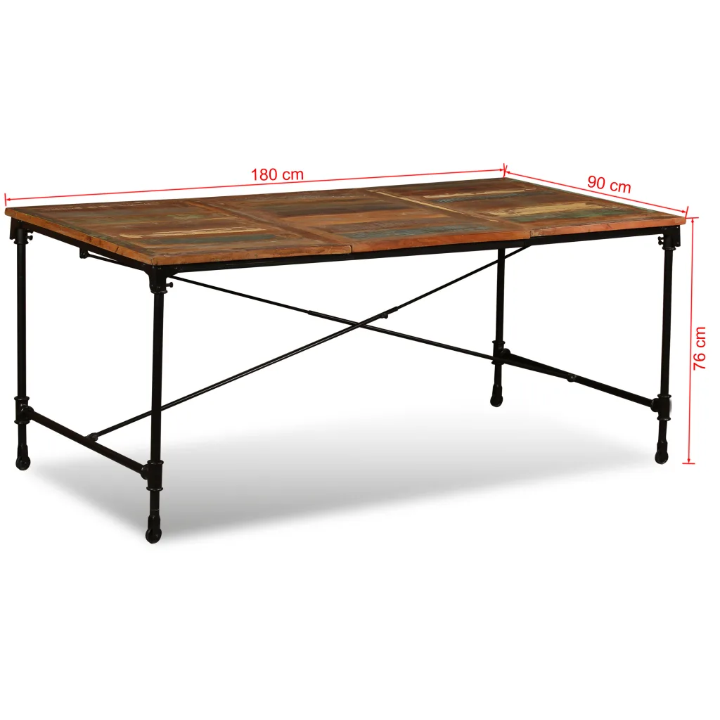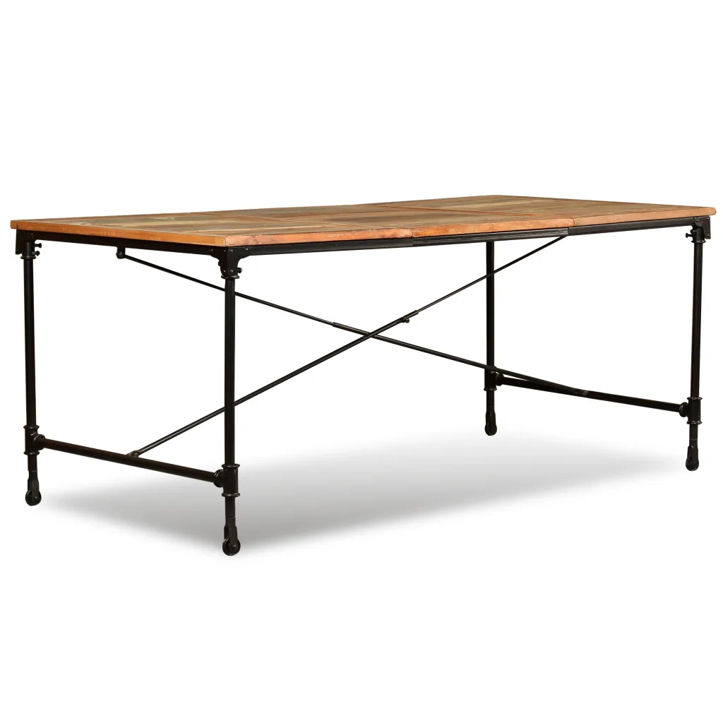 See industriaalse disainiga söögilaud toob kööki või söögituppa omapärase ilme ning loob mugava koha igapäevasteks eineteks. Lauaplaat on valmistatud mitmevärvilisest taastatud puidust, mida täiendab pulbervärvitud terasraam. Tugevad malmist rattad muudavad laua ümberpaigutamise lihtsaks, kui soovite ruumi koristada või mööblit ümber paigutada.