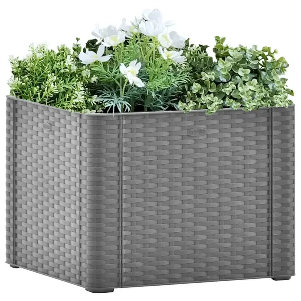 See isekastmissüsteemiga taimelava aitab hoida sinu lillede ja maitsetaimede mulla niiskena ka siis, kui sa ei saa neid iga päev kasta. Kivihall rotangi välimusega PP-konstruktsioon sobib nii rõdule, terrassile kui ka siseruumi ning talub hästi päikest, vihma ja külma. Tänu 35-liitrisele mahutavusele pakub taimelava piisavalt ruumi lopsakaks istutuseks kompaktses formaadis.