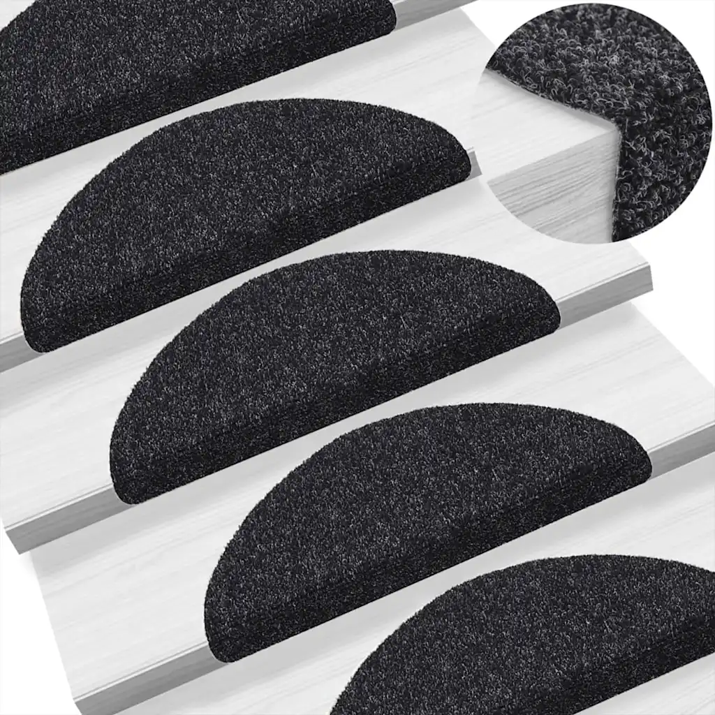 Need isekleepuvad trepimatid muudavad trepi kasutamise turvalisemaks, vähendades libisemisohtu ning kaitstes astmeid kriimustuste ja kulumise eest. Mustad poolringikujulised matid sobituvad hõlpsasti erinevate interjööridega ja summutavad sammude müra. Nõeltega pistetud polüpropüleenist kangas on vastupidav, kuumuskindel ja lihtsasti hooldatav, sobides igapäevaseks kasutamiseks kodus.