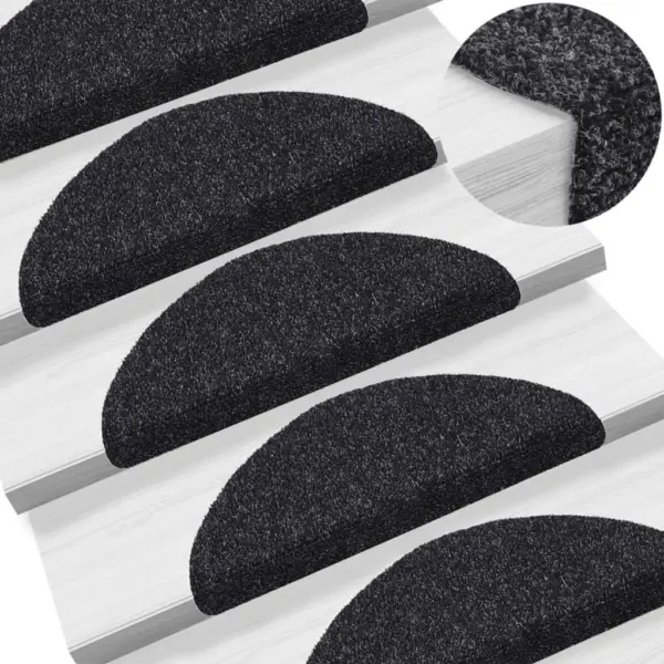 Need mustad isekleepuvad trepimatid aitavad vähendada libisemisohtu ja kaitsta trepiastmeid kriimustuste eest. Poolringikujuline disain sobitub astme esiservaga ning polüpropüleenist nõelvildist pind summutab samme ja muudab liikumise trepil vaiksemaks ja mugavamaks.