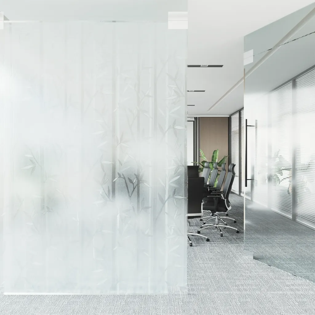 Jäätunud bambuse mustriga aknakile privaatsuse ja valguse tasakaalustamiseks