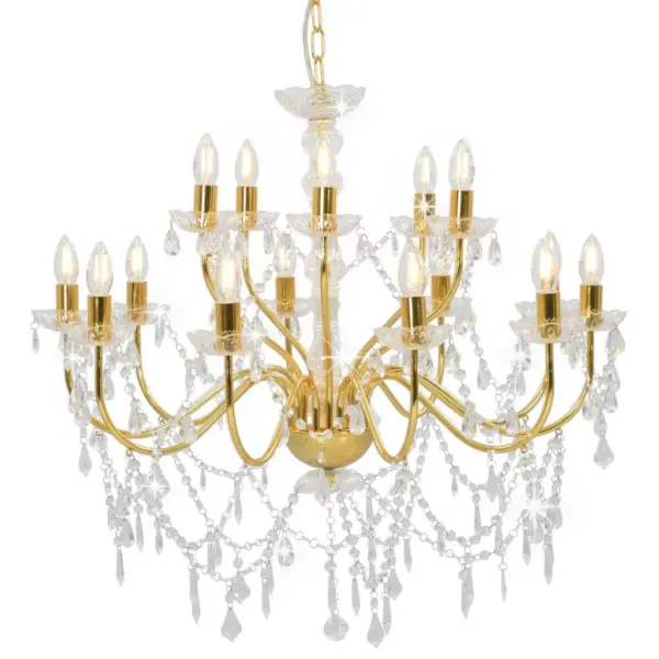 See kahekihiline kuldne lühter metallraami ja kristalliefektiga akrüülhelmestega muudab iga ruumi pilkupüüdvaks. Küünalt meenutavad pirnipesad ja sädelevad ketid loovad klassikalise ning veidi antiikse meeleolu, mis sobib nii elutuppa, söögituppa kui ka esinduslikule äripinnale. Tänu 15 E14 pirnipesale on võimalik saavutada rikkalik ja ühtlane valgustus vastavalt valitud pirnidele.