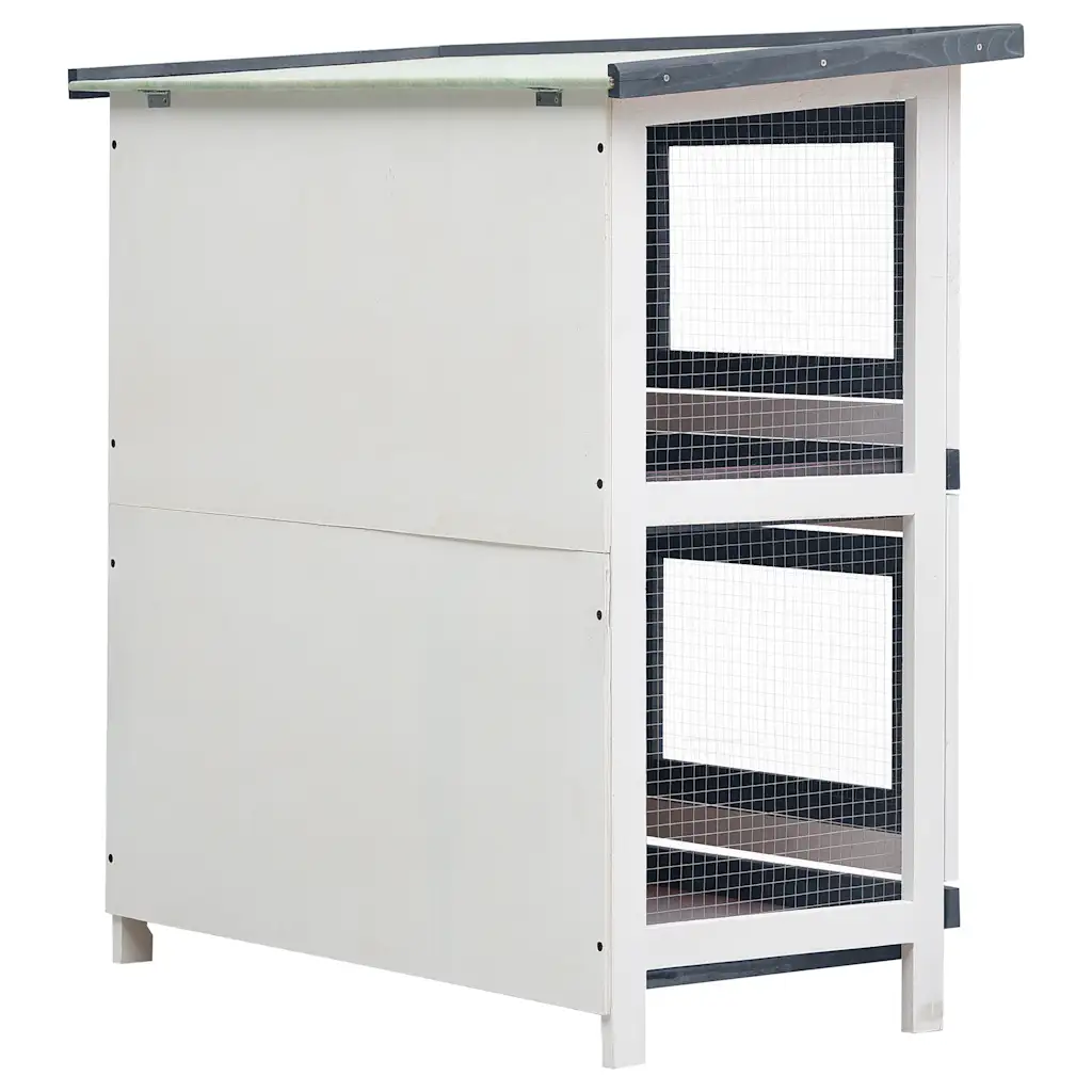 - Kahekorruseline küülikupuur hall-valge puidust raamiga
