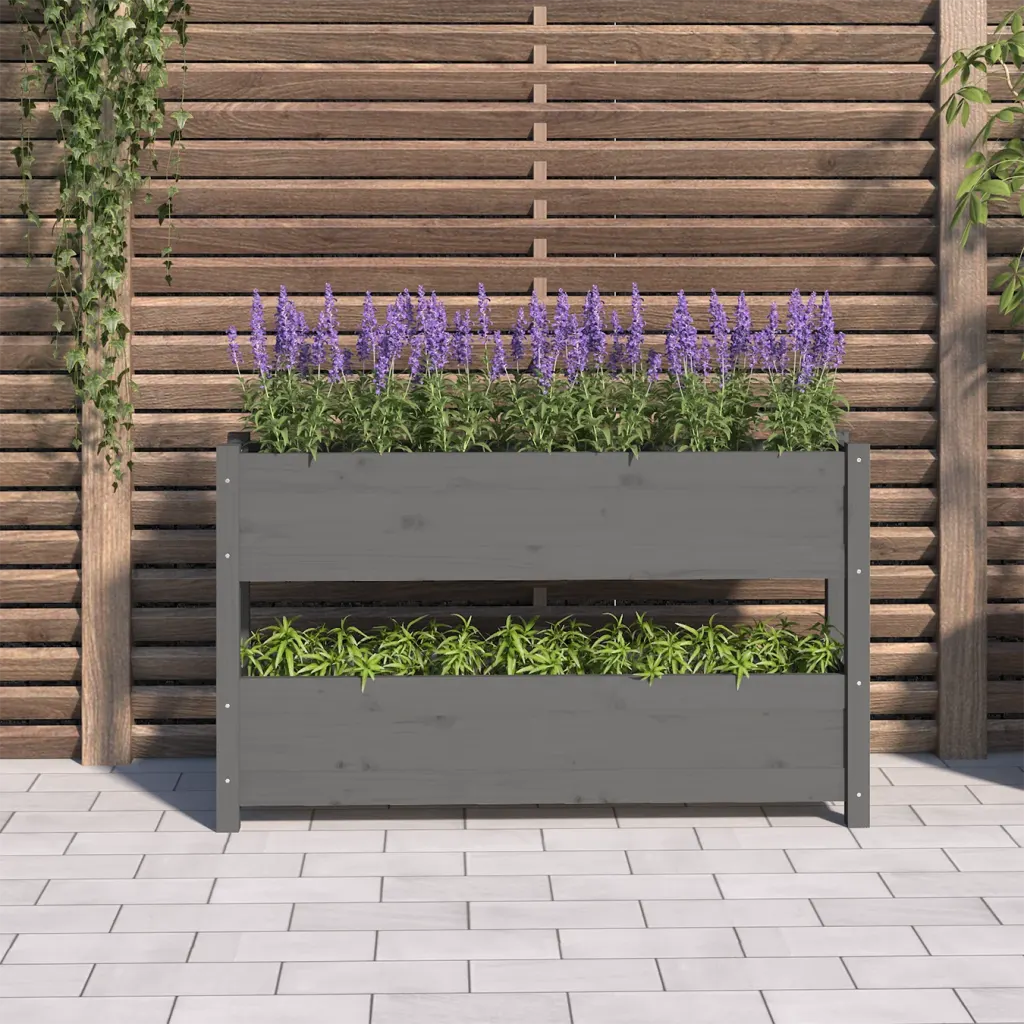 See hall kahetasandiline taimekast mõõtmetega 112 x 25 x 66 cm on praktiline lahendus rõdule, terrassile, verandale või aeda, kui soovid piiratud pinnale rohkem rohelust tuua. Männipuidust konstruktsioon loob loodusliku ja maalähedase ilme ning kõrgendatud peenar teeb taimede eest hoolitsemise mugavamaks.