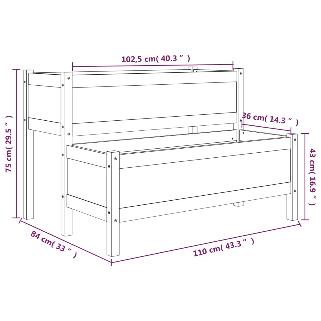 See hall kahetasandiline taimekast aitab luua kompaktse ja samas avara istutusala rõdule, terrassile või aeda. Täispuidust konstruktsioon tagab stabiilsuse, samal ajal kui kaks eraldi istutuskasti pakuvad rohkelt ruumi köögiviljadele, maitsetaimedele ja lilledele.