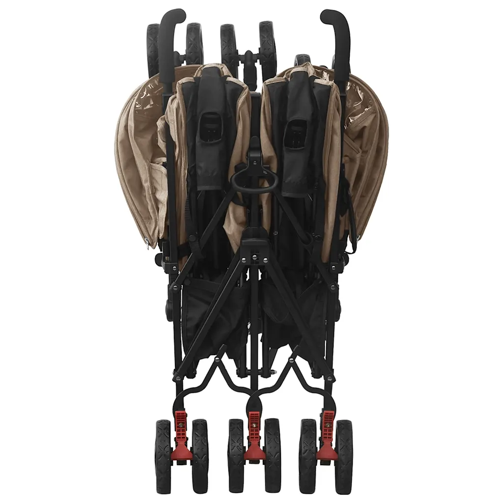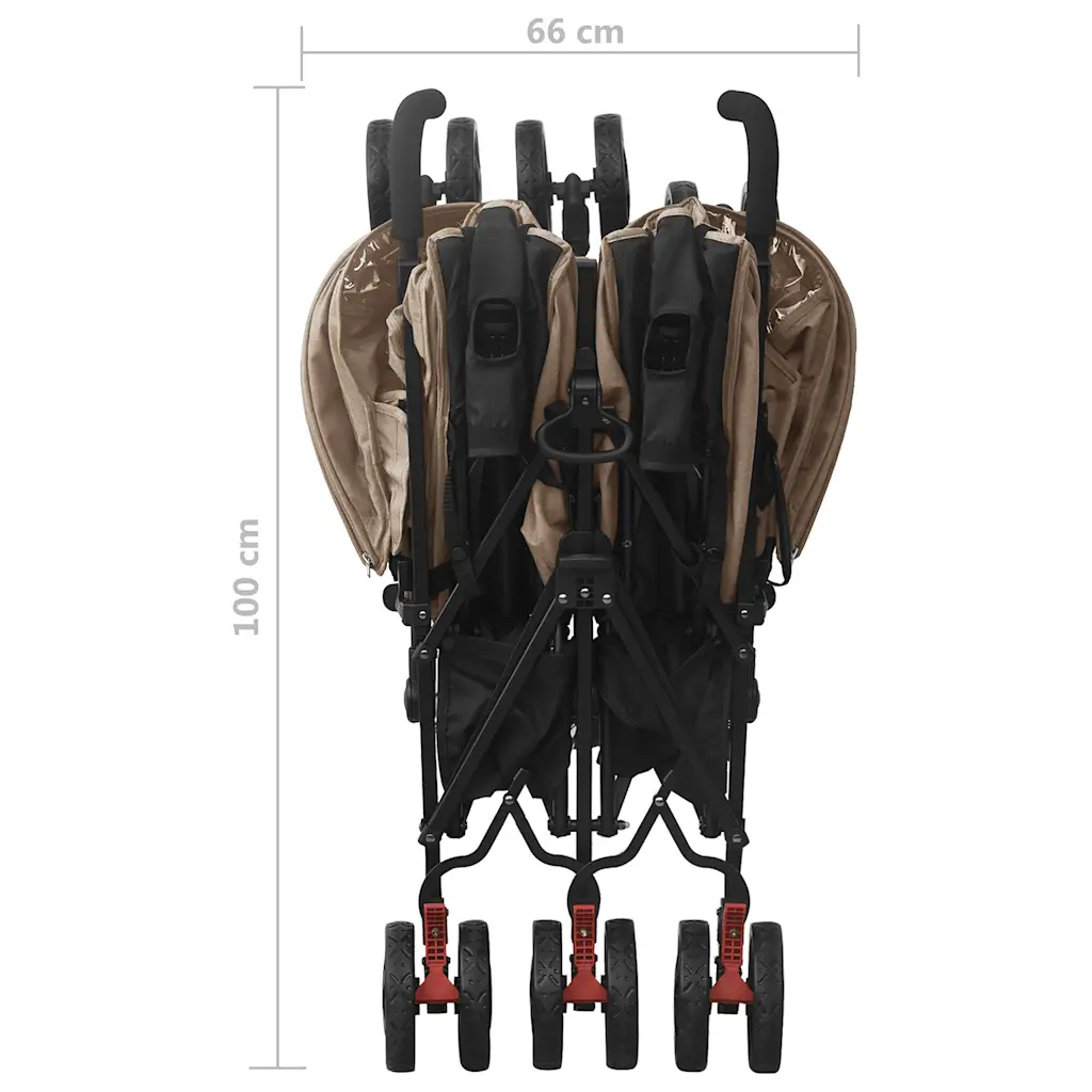 See kaksikute jalutuskäru muudab igapäevase liikumise lastega lihtsamaks. Pruunikashall käru sobib hästi jalutuskäikudeks pargis, perega aja veetmiseks või reisidele. Reguleeritav seljatugi ja jalatugi aitavad leida igale lapsele mugava asendi ning kokkupandav varikatus pakub kaitset päikesevalguse ja UV-kiirte eest.