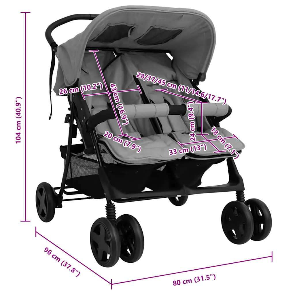 Enne esmakordset kasutamist pange kaksikute jalutuskäru kokku vastavalt kaasasolevale juhendile ja veenduge, et kõik kinnitused on kindlalt paigas. Kontrollige, et iga lapse kaal ei ületaks 15 kg, ning kohandage käru nii, et lastel oleks turvaline ja mugav istuda. Vajaduse korral saate jalutuskäru kiiresti kokku lükata, mis lihtsustab selle autosse tõstmist või väiksemasse hoiuruumi paigutamist.