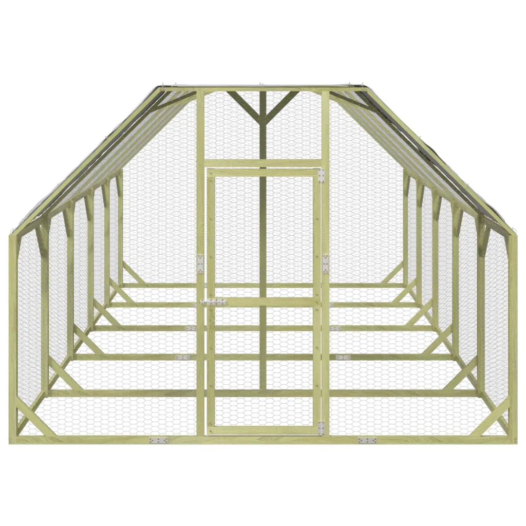 See suur kanakuut mõõtmetega 268 x 500 x 190 cm loob kanadele, partidele ja teistele väikeloomadele kindla ning mugava väliaediku. Roheimmutatud männipuit ja tsingitud traatvõrk tagavad konstruktsiooni vastupidavuse õuetingimustes, veekindel polüesterkatus kaitseb loomi vihma eest ja lukustatav uks aitab hoida karja kontrolli all.