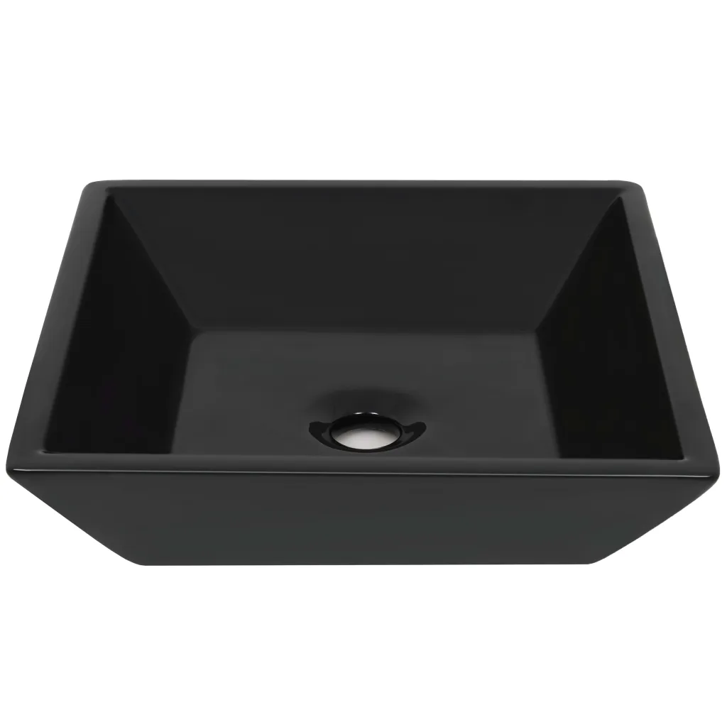 Komplekti kuulub üks must kandiline keraamiline valamu. Kraan ja äravoolutoru ei kuulu komplekti ning need tuleb soovi korral eraldi juurde osta.