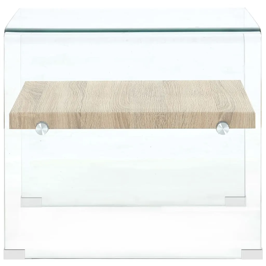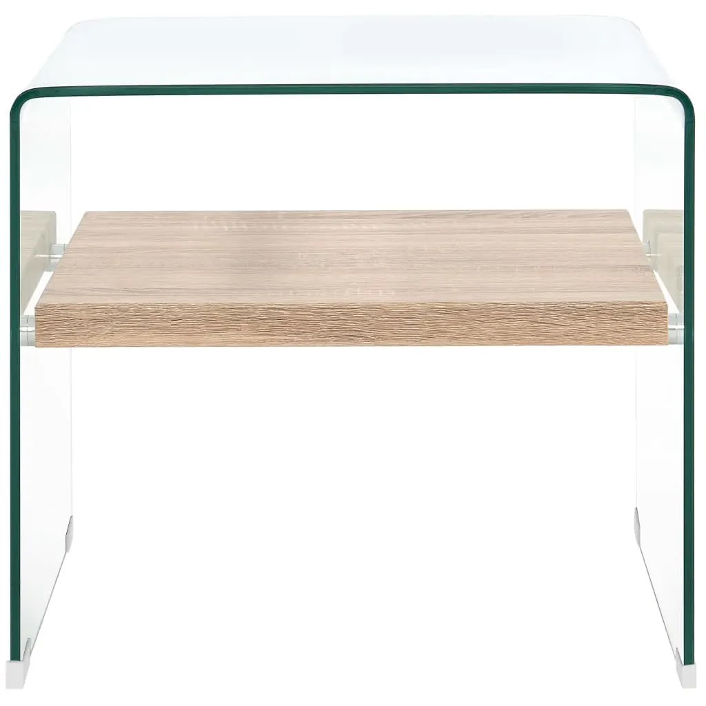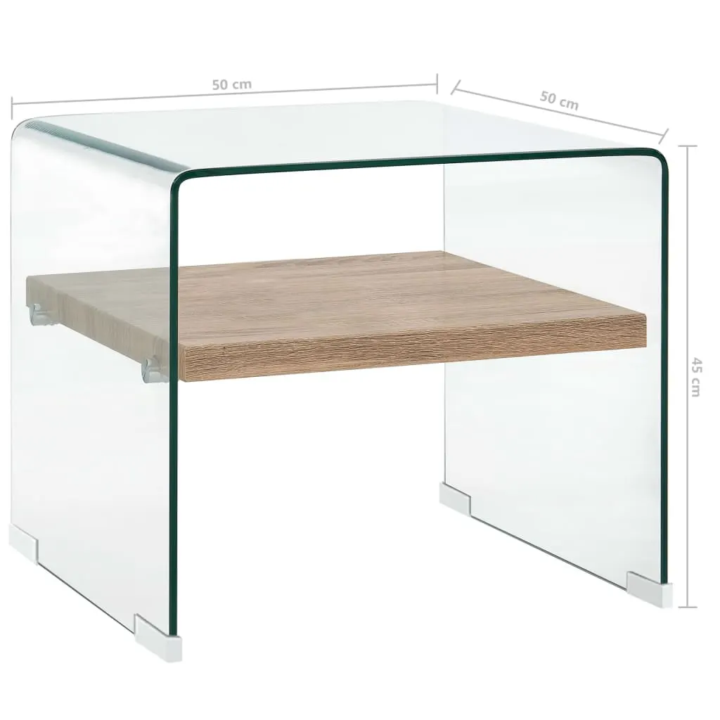Läbipaistev klaaspind ja tammevärvi MDF-riiul loovad ajatu ja minimalistliku ilme, mis sobitub erinevate sisustusstiilidega. Integreeritud riiul pakub lisaruumi raamatutele, ajakirjadele ja väiksematele esemetele, hoides elutoa pinna korrastatuna ja vajalikud asjad mugavalt käeulatuses.