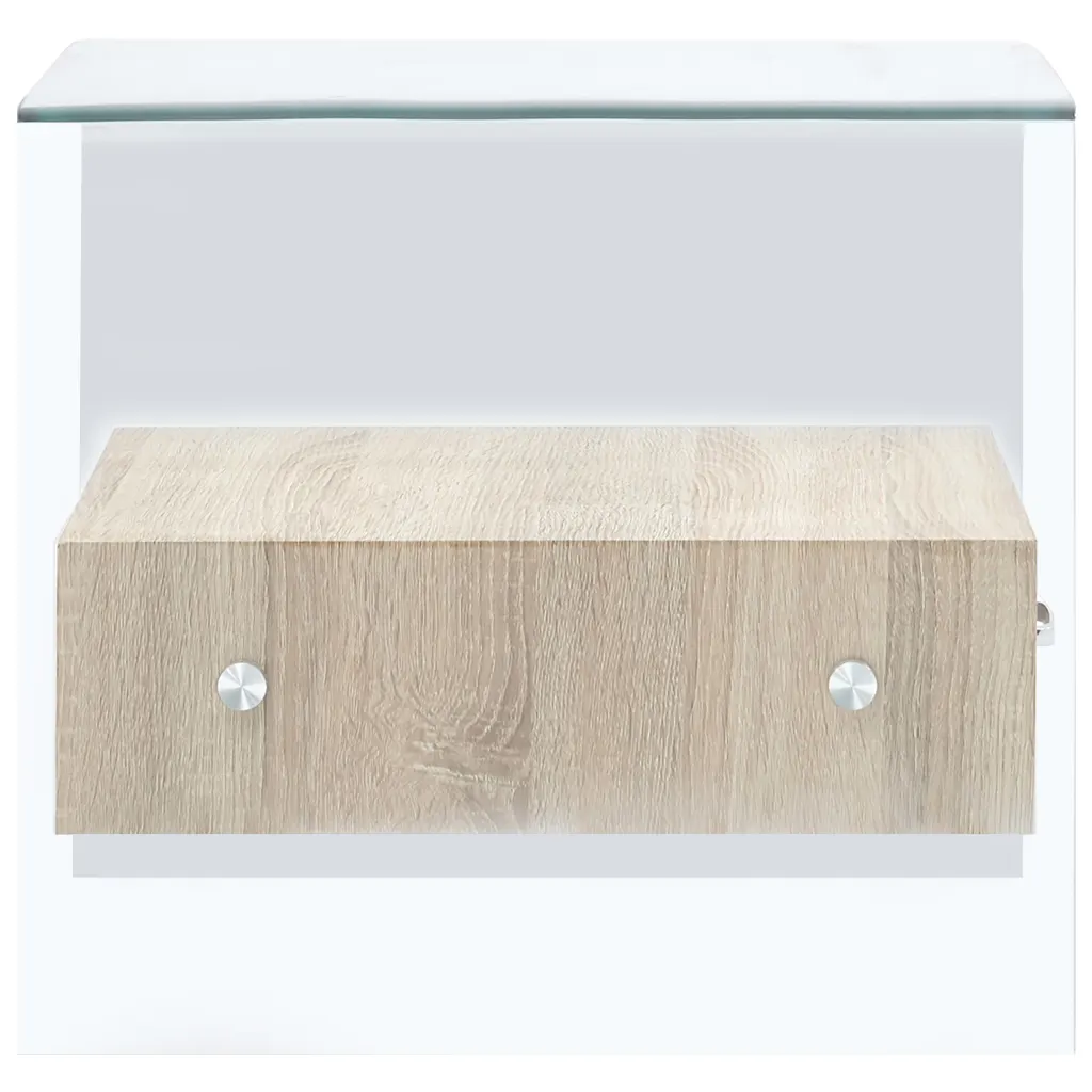 Kui otsite elutuppa või magamistuppa lauda, mis ühendab ajatu minimalistliku välimuse ja praktilise hoiuruumi, on see mudel sobiv valik. Läbipaistev karastatud klaas, tammeimitatsiooniga sahtel ja kompaktsed mõõdud 50 x 50 x 45 cm loovad funktsionaalse lahenduse, mis sobitub erinevate sisustusstiilidega ja on lihtne hooldada.