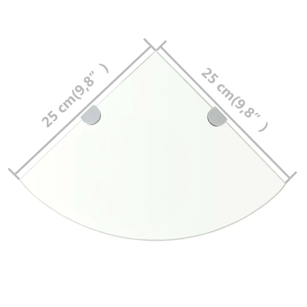 - 2 läbipaistvat nurgariiulit karastatud klaasist, mõõtmetega 25 x 25 cm