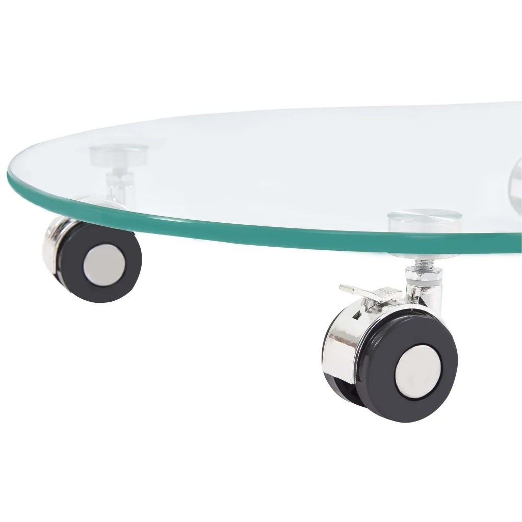Paigutage laud tasasele pinnale ja liigutage seda vastavalt vajadusele nelja pöörleva ratta abil. Laud sobib kasutamiseks diivani või tugitooli kõrval, kus on vaja käeulatuses hoida jooke, ajakirju, pulte või muid väiksemaid esemeid. Läbipaistev karastatud klaas sulandub erinevate värvi- ja materjalivalikutega, mistõttu on lauda lihtne olemasoleva sisustusega kombineerida.