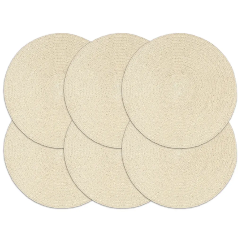 Kui soovite lauale looduslähedast ilmet ja praktilist katet, on need käsitsi valmistatud puuvillased lauamatid sobiv valik. Komplektis olevad 6 ümmargust matti pakuvad ühtset ja naturaalset stiili nii igapäevasteks toidukordadeks kui ka tagasihoidlikumateks pidulikeks kateteks.