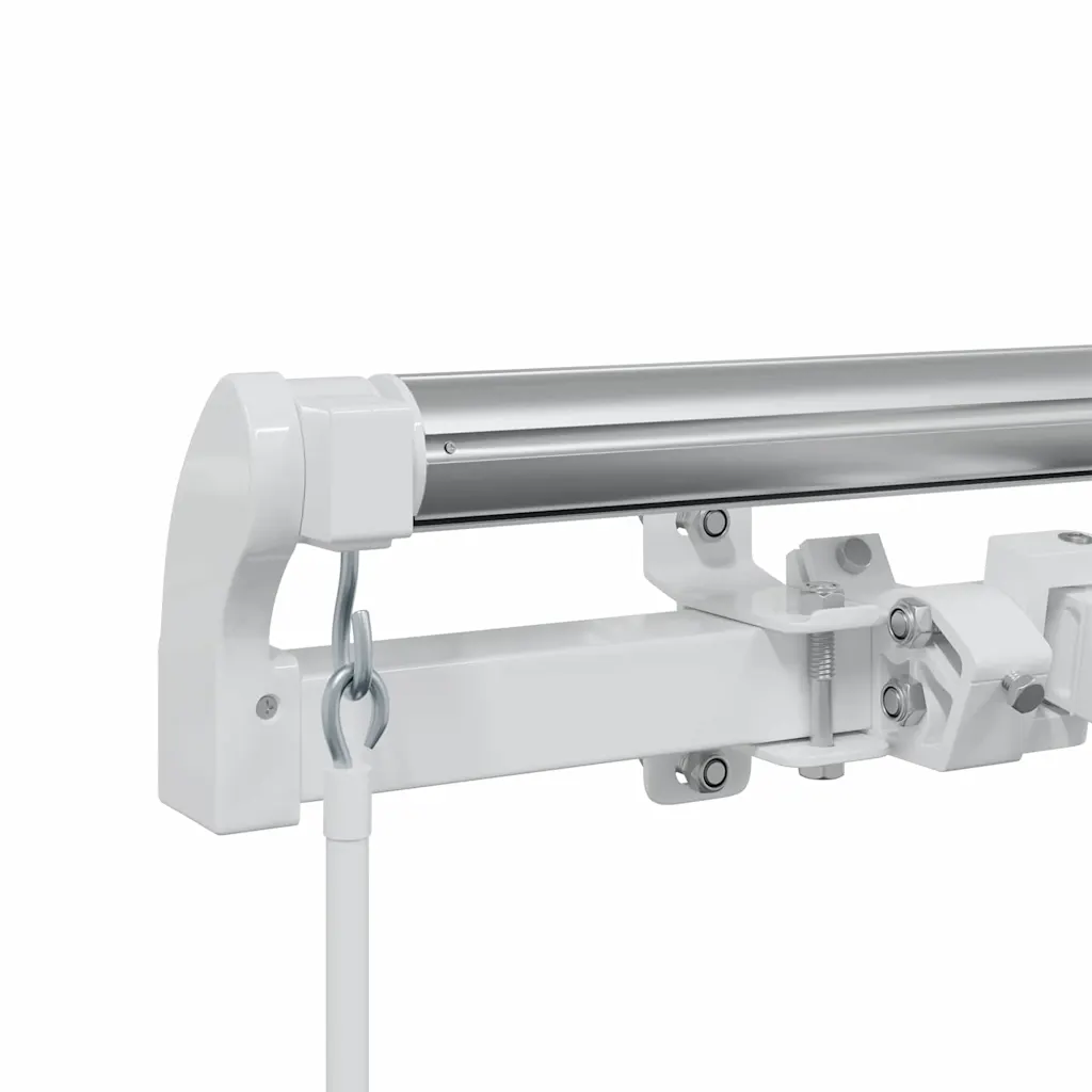 See käsitsi sissetõmmatav terrassivarikatus loob avara varjuala sinu terrassile või aeda. Valgest alumiiniumist konstruktsioon sobib modernse arhitektuuriga ja aitab kaitsta istumisnurka päikese ning ilmastiku eest, säilitades samal ajal avatud väliruumi tunde.