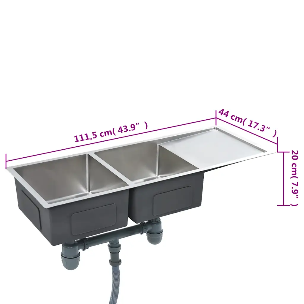 - 111,5 x 44 x 20 cm mõõdud – annavad avara valamu, mis mahub standardsetesse köögitasapindadesse.