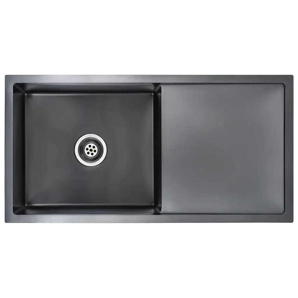 See käsitsi valmistatud köögivalamu ühendab puhta modernse disaini ja praktilise funktsionaalsuse. Harjatud roostevabast terasest musta viimistlusega pind sobib nii kaasaegsesse kui klassikalisse kööki, pakkudes samal ajal vastupidavust igapäevasele kasutusele. Integreeritud nõrutusalus muudab nõude pesemise ja köögiviljade ettevalmistamise lihtsamaks ja organiseeritumaks.