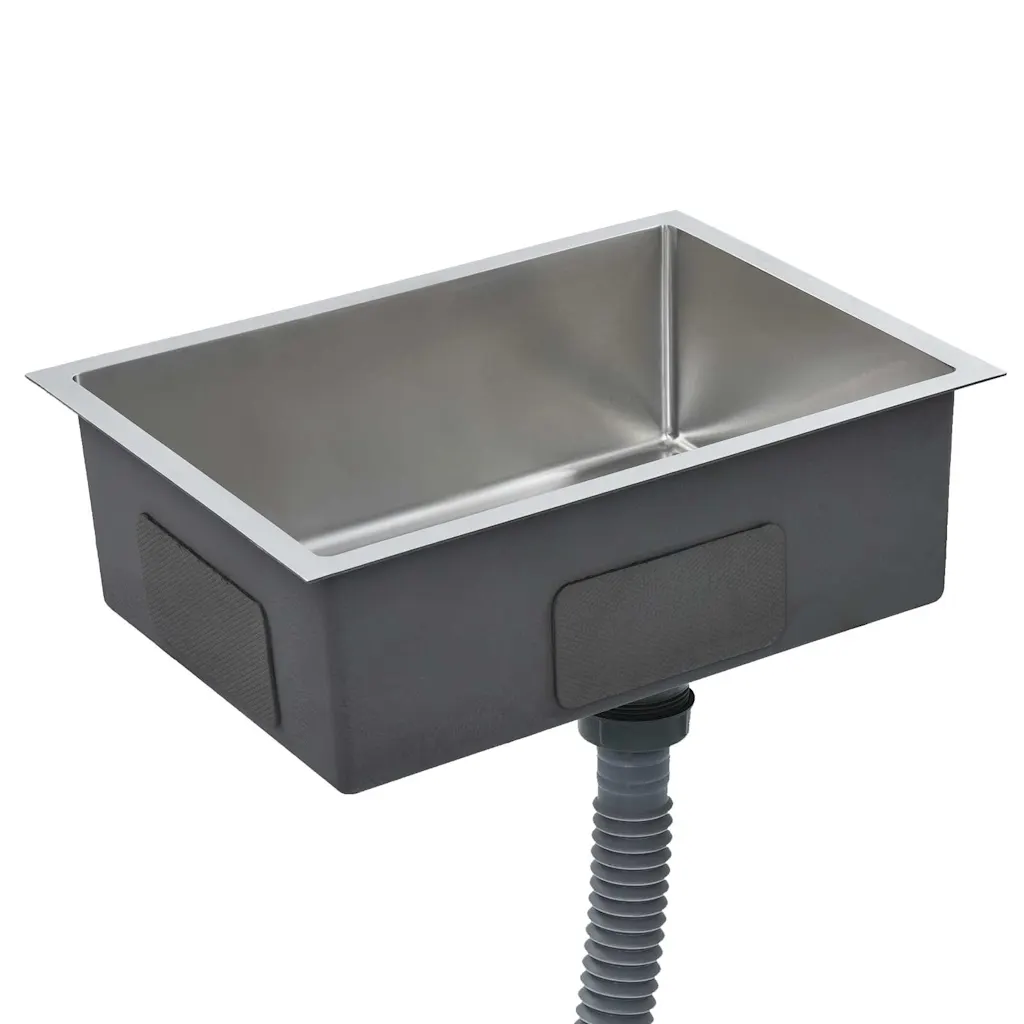 - Käsitsi valmistatud roostevabast terasest valamu on vastupidav ja sobib toiduainetega kokkupuuteks.