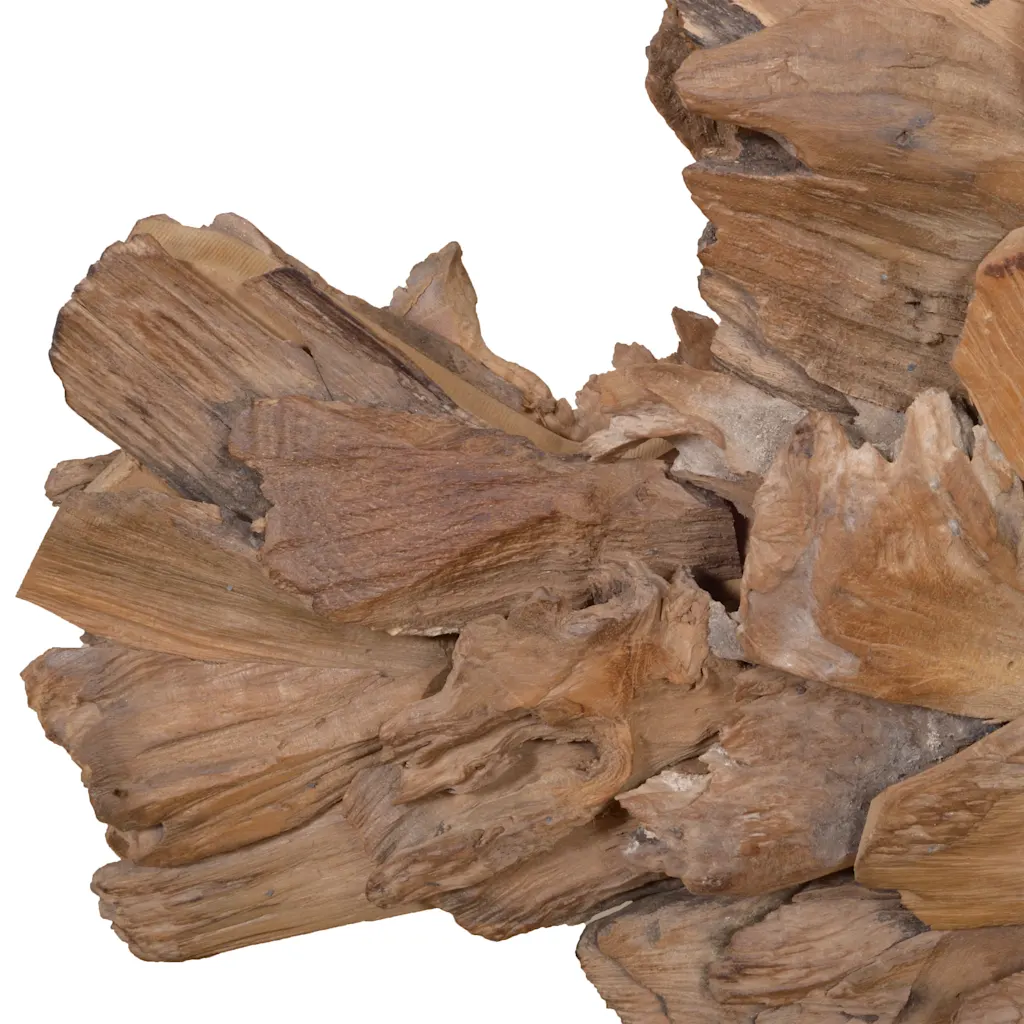 - Naturaalsest tiigipuust valmistatud skulptuur rõhutab puidu loomulikku toonivaheldust ja tekstuuri.