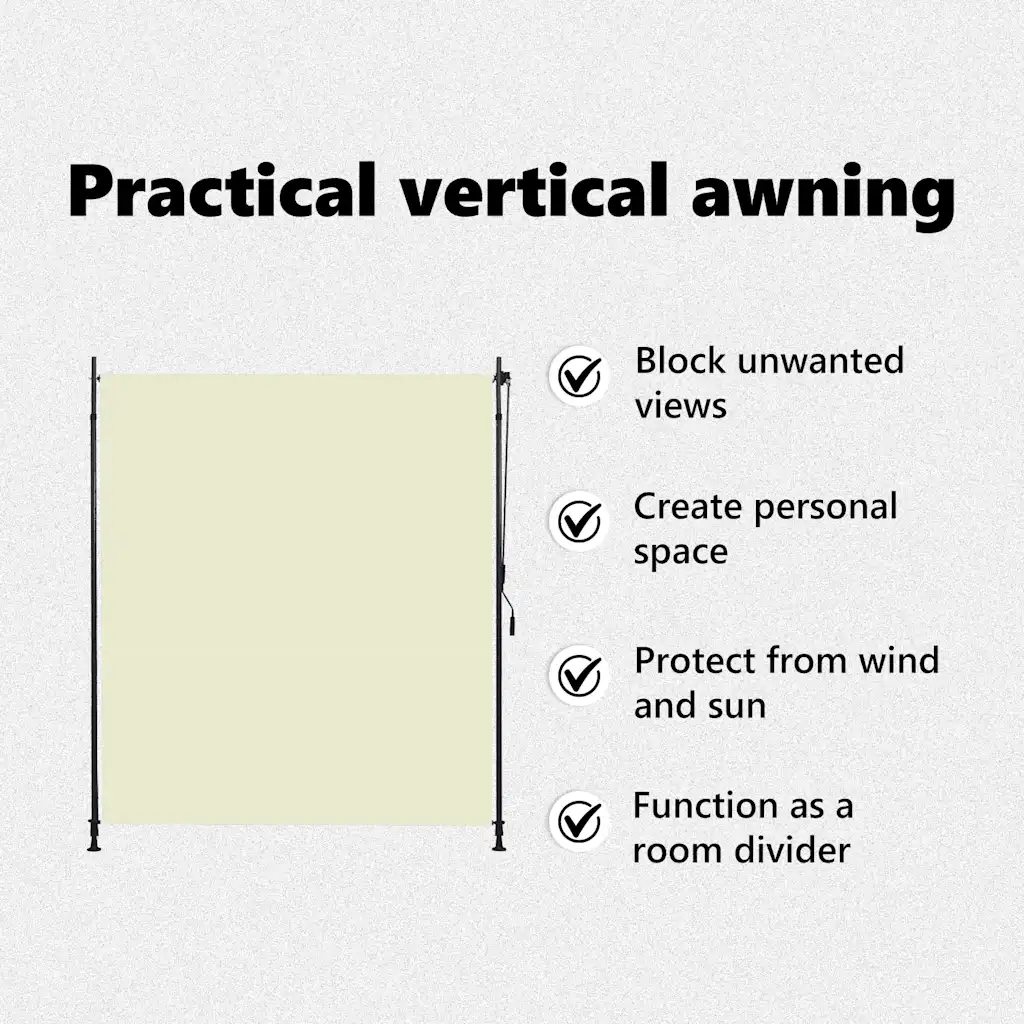 See kreemjasvalge käsivändaga juhitav väliruloo aitab luua rõdul, terrassil või aias rohkem privaatsust ja kaitset otsese päikesevalguse eest. PA-kattega polüesterkangas on UV- ja kuumuskindel, blokeerib valgust, kuid laseb õhul liikuda, tagades mugava välisala kasutuse ka päikeselistel päevadel.