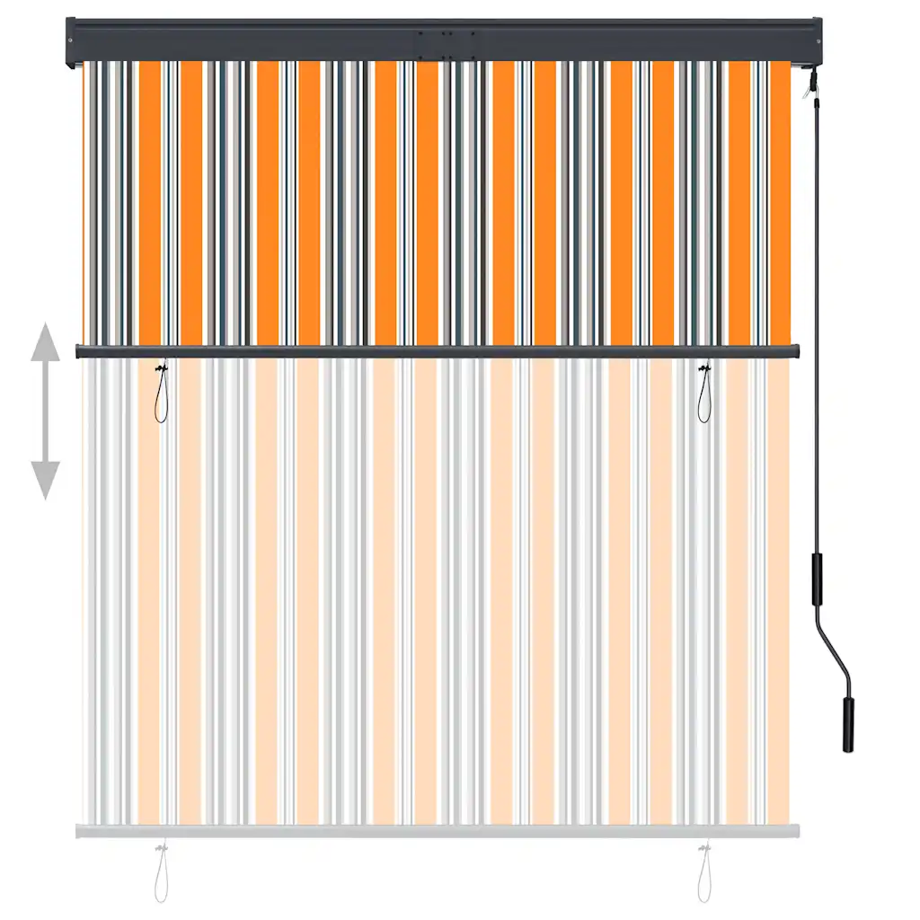 See käsivändaga kokkukeritav väliruloo loob rõdul, terrassil või verandale varjulise ala, vähendab otsest UV-kiirgust ja kuumust ning aitab säilitada privaatsust päevase kasutuse ajal. Mitmevärviline kollase ja sinise tooniga kangas lisab välialale elavust ja loob ühtlase vertikaalse varju.