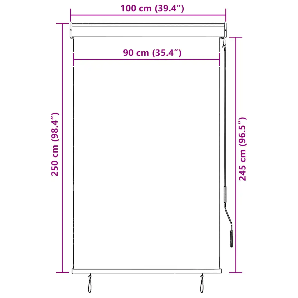 - Mõõdud 100 x 250 cm sobivad hästi enamiku rõdude ja terrasside avade katmiseks, pakkudes kõrget vertikaalset varju.