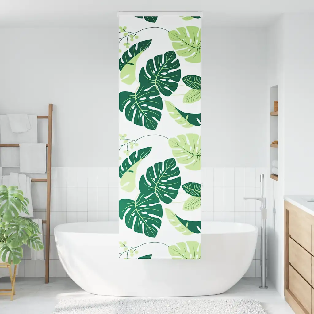Privaatsust pakkuv kassetiga duširuloo stiilse roheliste lehtede mustriga