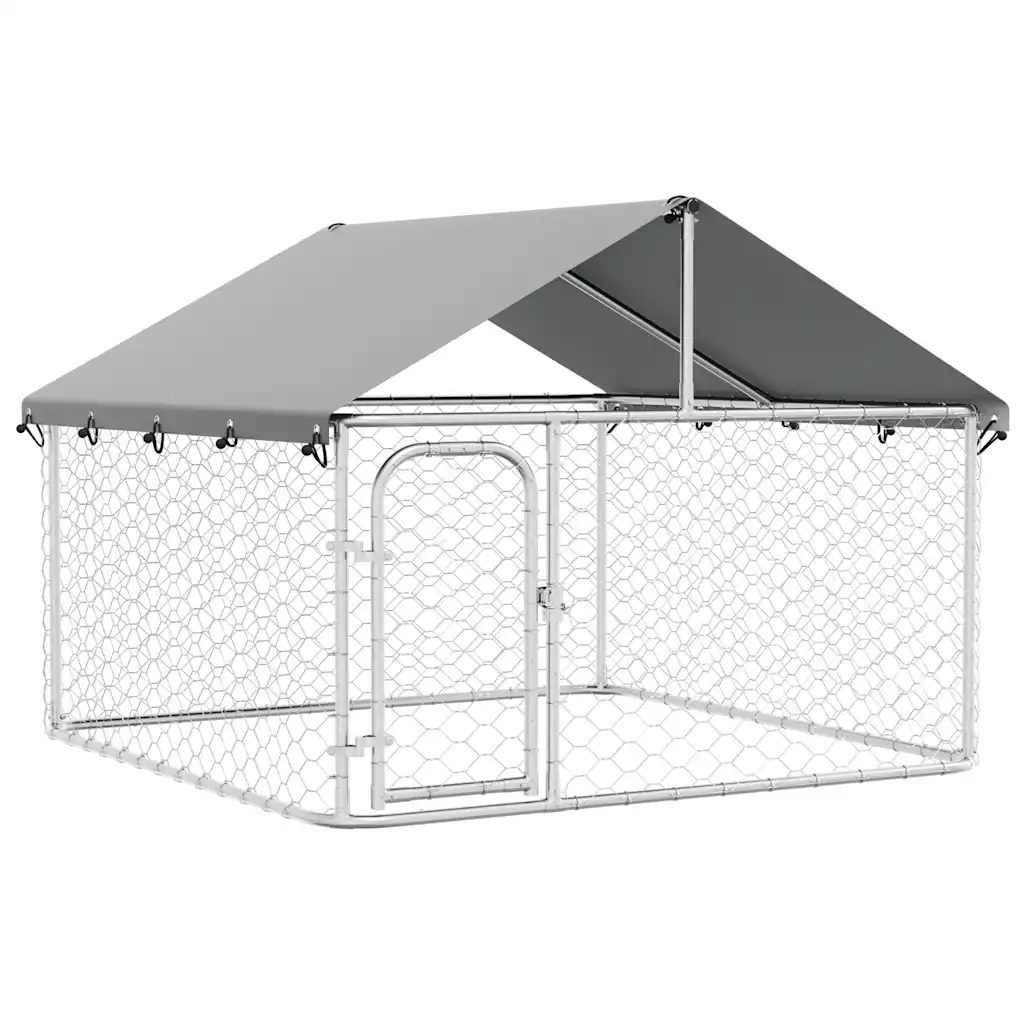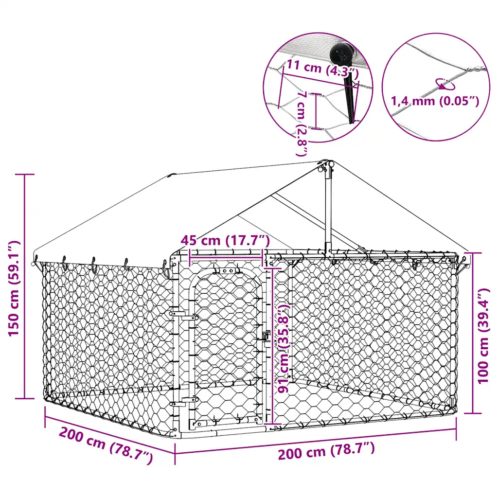 - Tsingitud terasest raam ja võrgupaneelid koeraala piiramiseks ja tugevaks konstruktsiooniks.