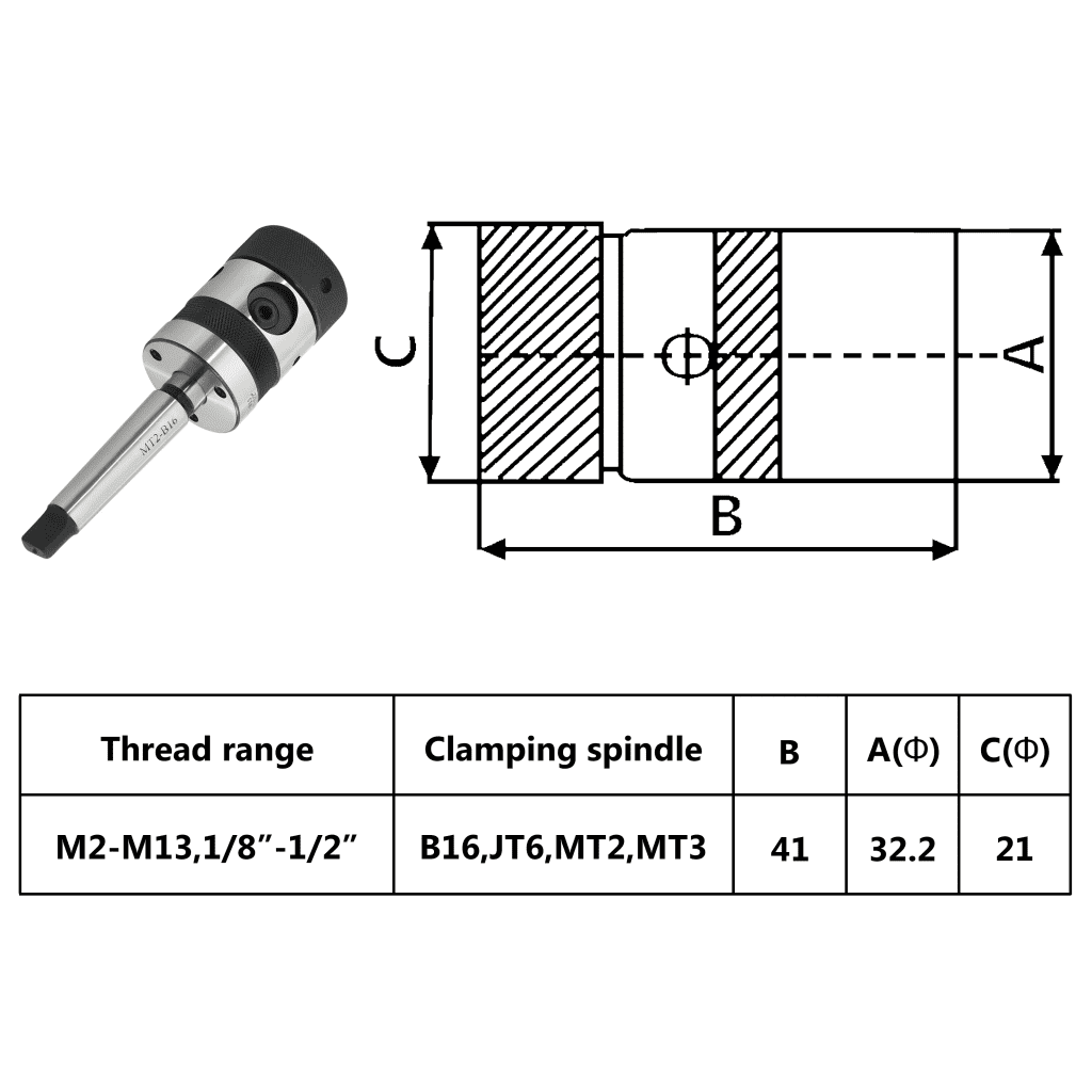 B16 keermelõikepadruni komplekt koos MT2 vardaga muudab tavalise puur- või treipingi sobivaks sisekeermete töötlemiseks. Komplekt on mõeldud M2–M13 keermevahemikule, pakkudes kindlat kinnitust ja täpset joondust. Vastupidavast 40Cr terasest valmistatud detailid tagavad pika kasutusea ja mõõdutruu tulemuse ka sagedasel kasutamisel.